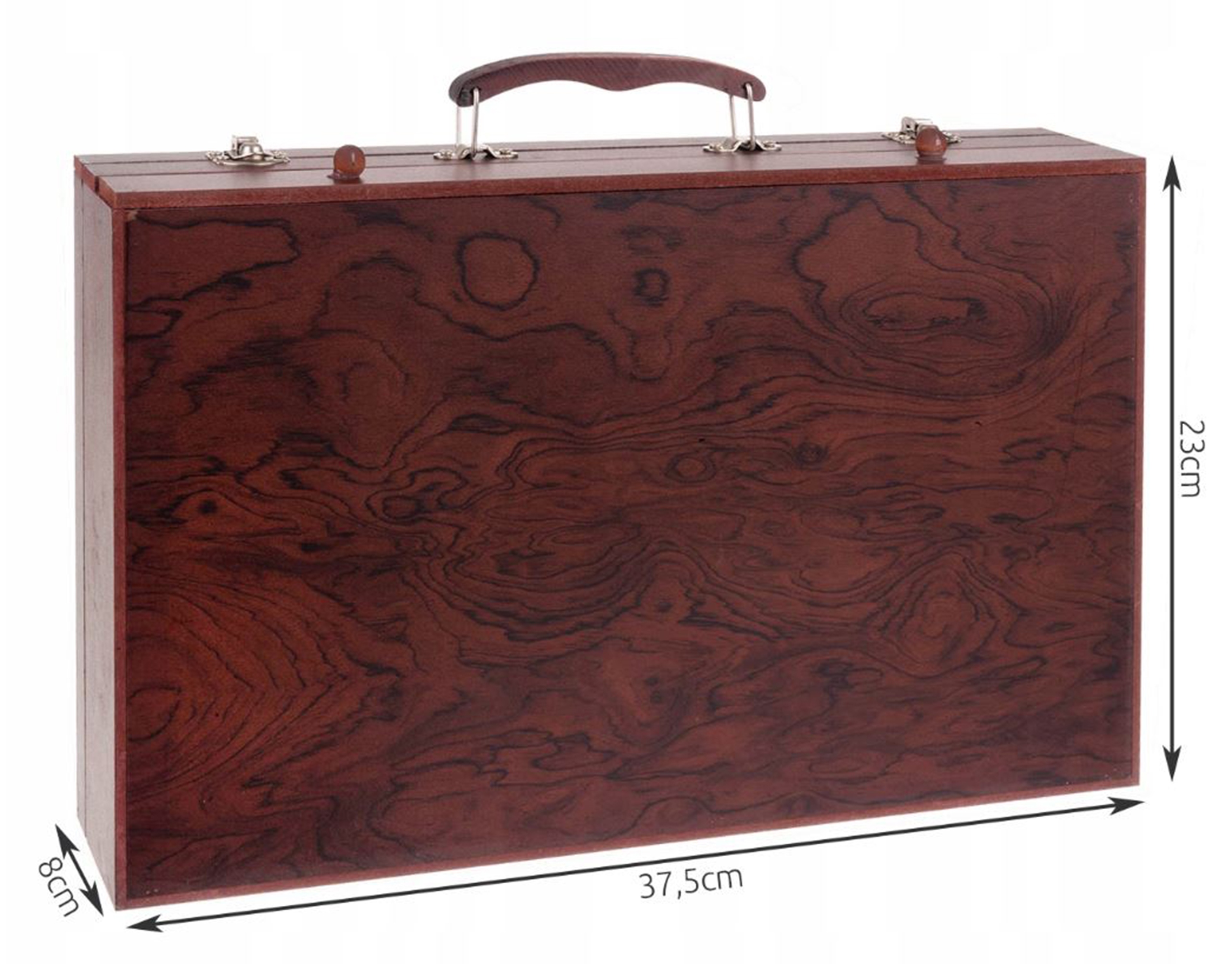 ✔️ Все це поміщається в елегантну валізу з високоякісного ДЕРЕВАщо впливає на довговічність і екологічність усього комплекту.