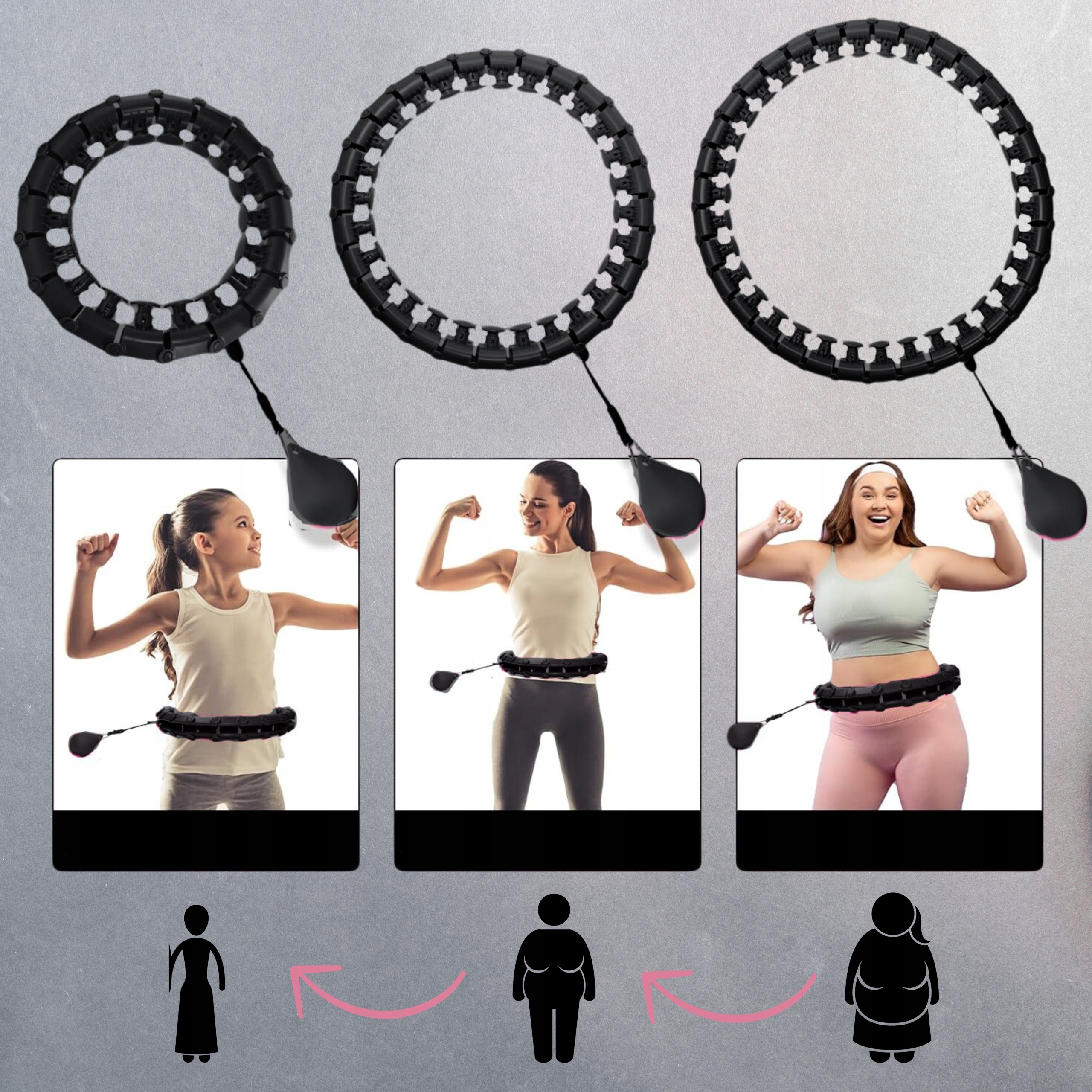 ✅ ДО 24 СЕГМЕНТІВ, ЩО ДОЗВОЛЯЮТЬ РЕГУЛЮВАТИ РОЗМІР ХУЛА-ХОПУ ПІД ВАШУ ТАЛІЮ.