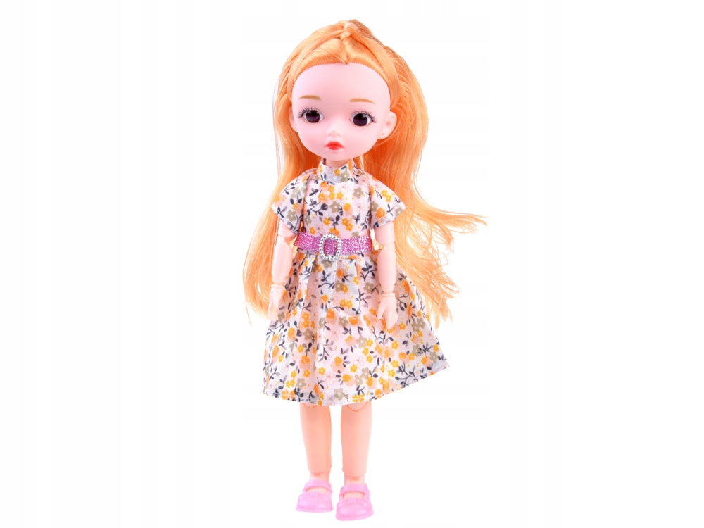 Лялька одягнена в красиве кольорове плаття та рожеві туфельки. Її маленьке личко обрамляють довге блискуче волосся, яке можна розчісувати і робити різні зачіски.