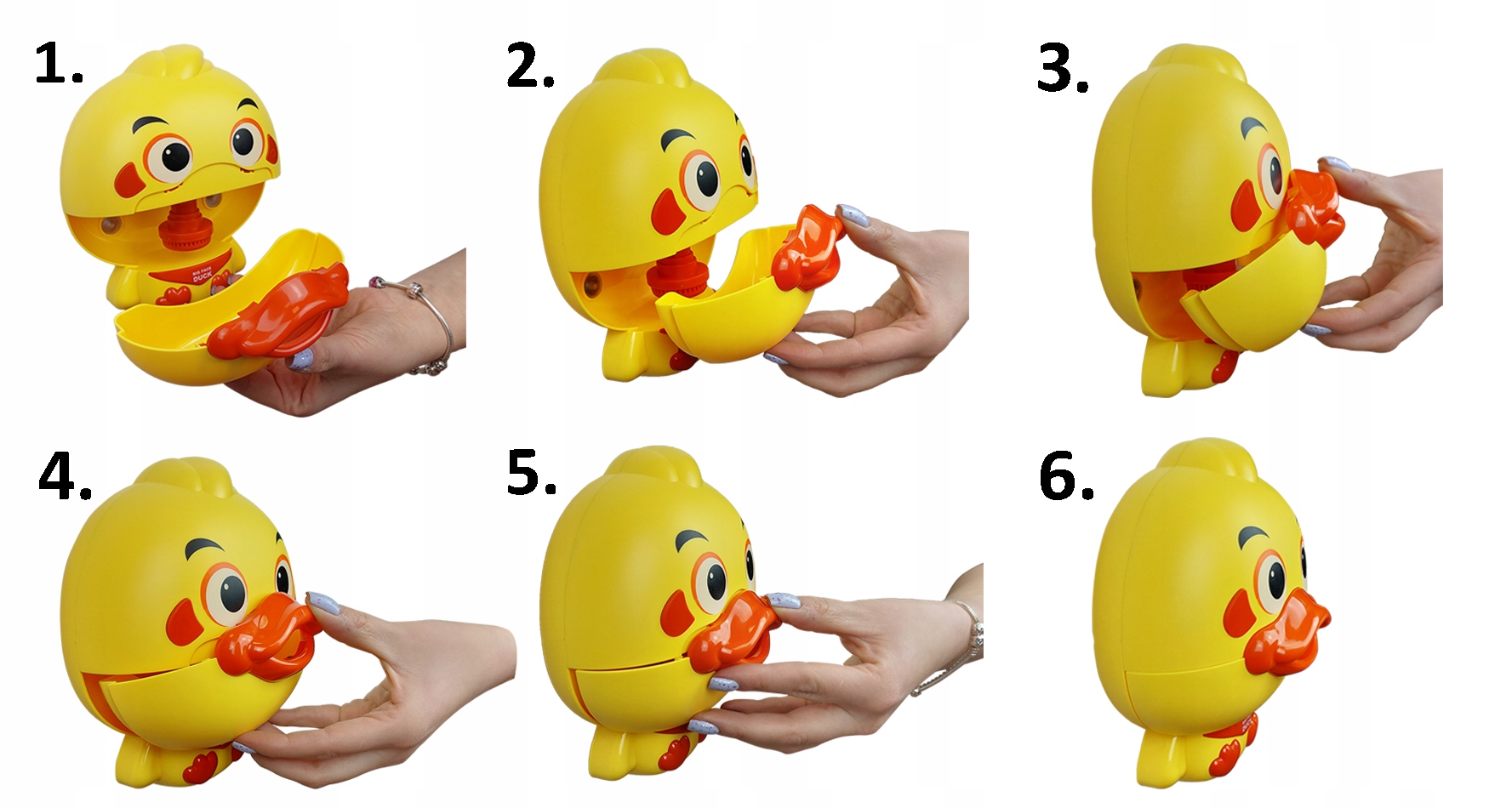 Ви можете легко розібрати контейнер, наповнити його мильним розчином і встановити його знову. Просто поставте контейнер під кутом і обережно посуньте його так, щоб піногенератор опинився всередині, коли дзьоб качки клацне разом з іншими іграшками, все на місці.