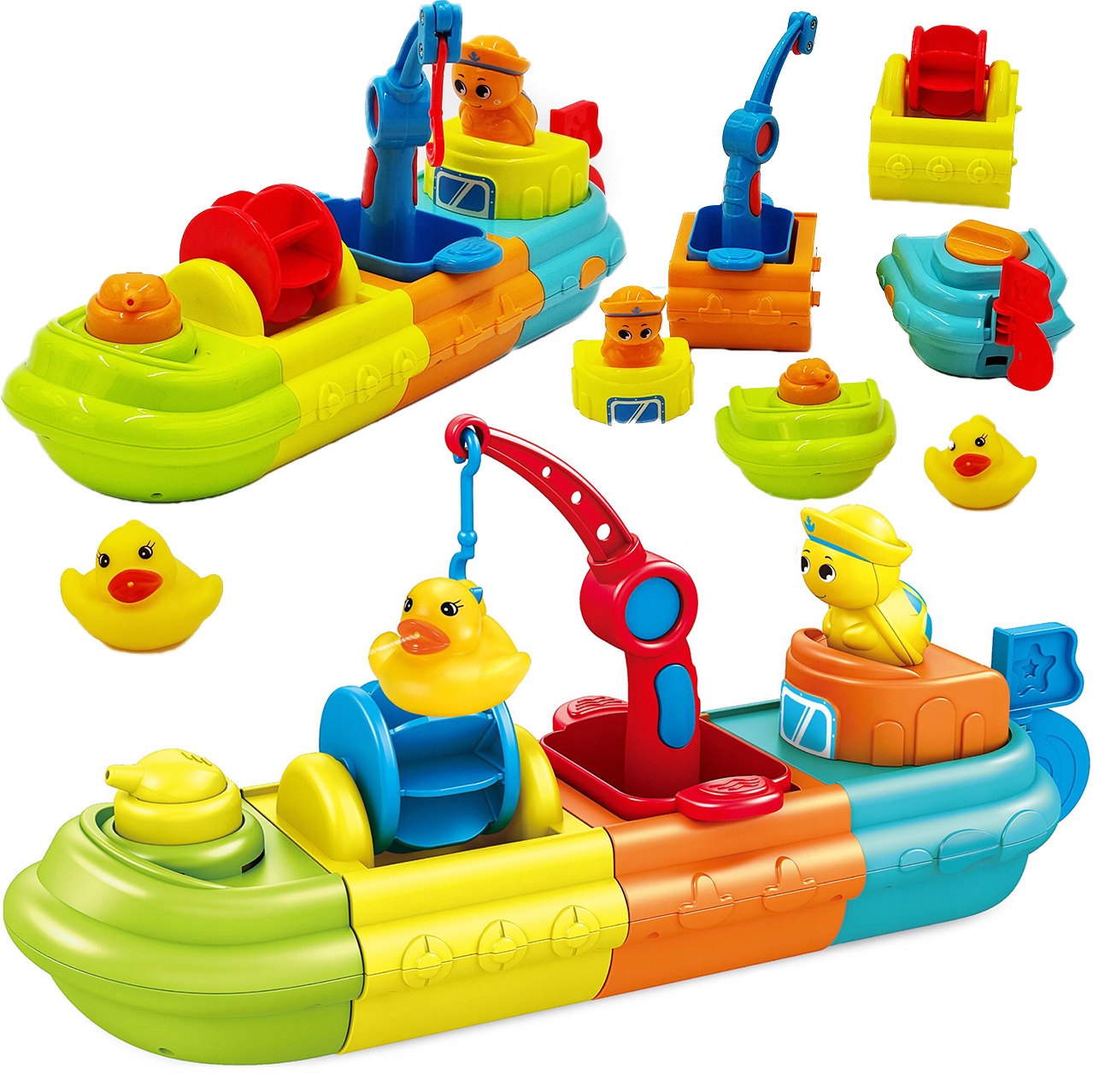 Colorful Boat від Woopie – це іграшка, яка робить купання дітей приємнішим. Виготовлений у вигляді різнокольорового кораблика з пасажирами - черепахою і качкою. Корабель складається з декількох частин. Він оснащений краном з гаком, на який ми можемо прикріпити качку, водяний млин і гармата. Призначено для дітей від 18 місяців.