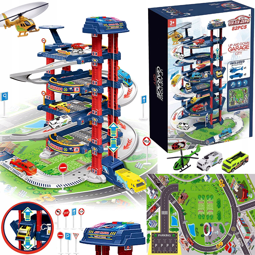 Великий паркінг Інтерактивний гараж для дітей Електричний ліфт + килимок + 2 металеві автомобілі + 1 вертоліт + аксесуари