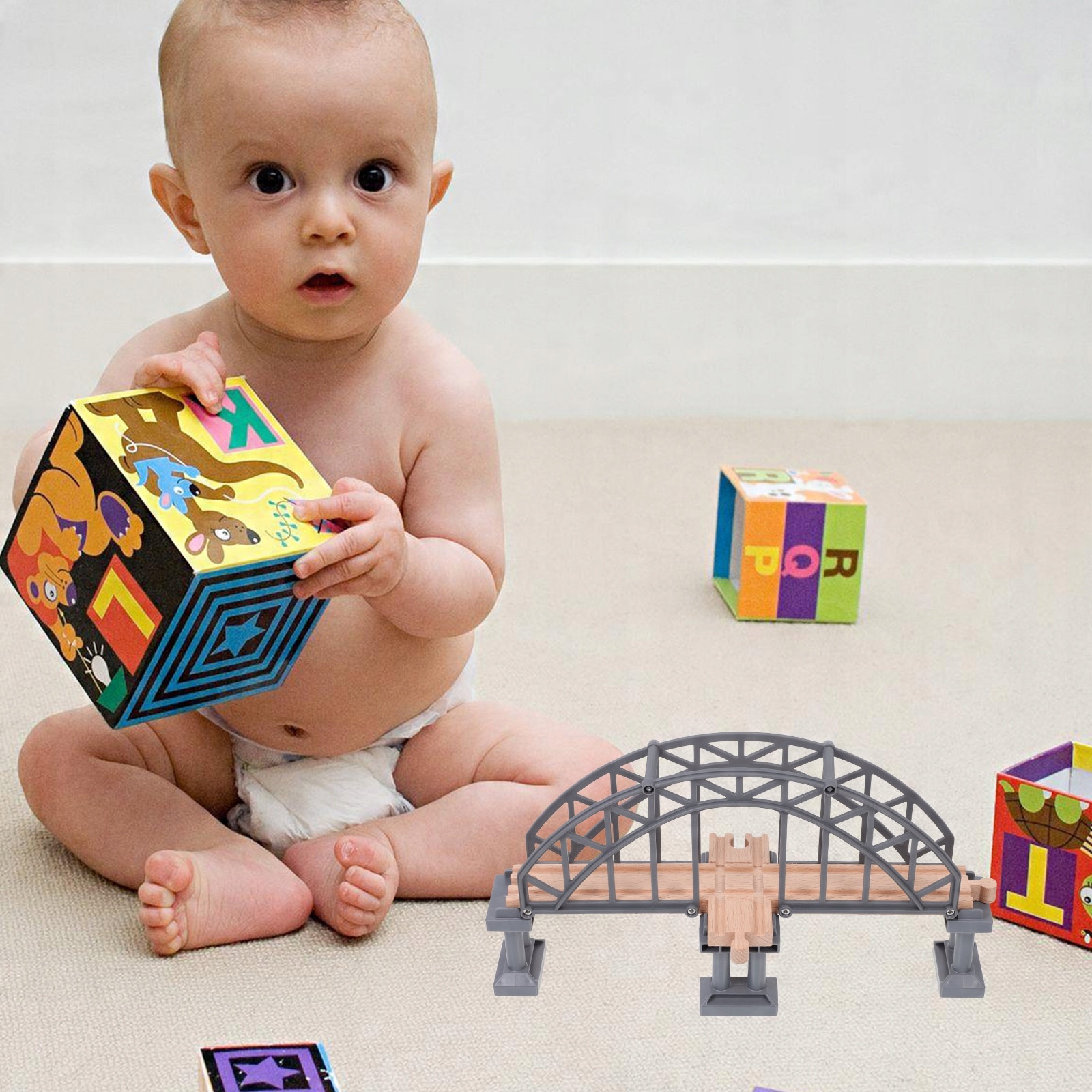 ✅Це іграшка з мостом. Діти можуть поставити іграшковий поїзд на дерев'яний міст, щоб імітувати рух поїзда. Ні