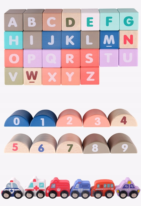 Навчальні блоки допомагають дітям молодшого віку розпізнавати форми та кольори. Вони підтримують логічне мислення, стимулюють уяву та розвивають творчі здібності дітей. Ідеальним вступом до початкового навчання стануть різнокольорові кубики з буквами, що містять весь алфавіт, і цифрами від 0 до 9. Крім того, спільна гра у великій групі дітей вчить співпраці та взаємного спілкування.