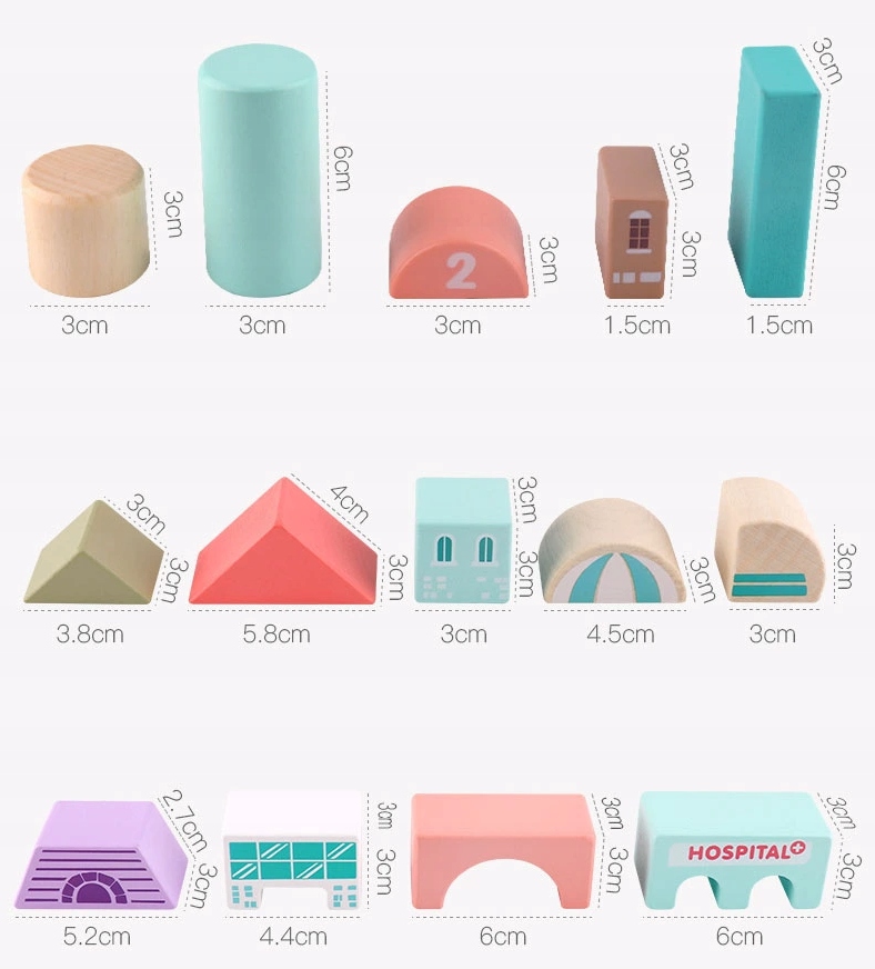 Гра з кубиками може приймати різні форми, окрім згаданого вище будівництва міста чи вивчення лічби та алфавіту, наш набір блоків можна використовувати як освітню сортувальник. Упаковка була розроблена таким чином, що, крім зберігання блоків, вона також служить сортувальником. На кришці вирізані різні форми, у які потрібно вставити відповідні блоки.