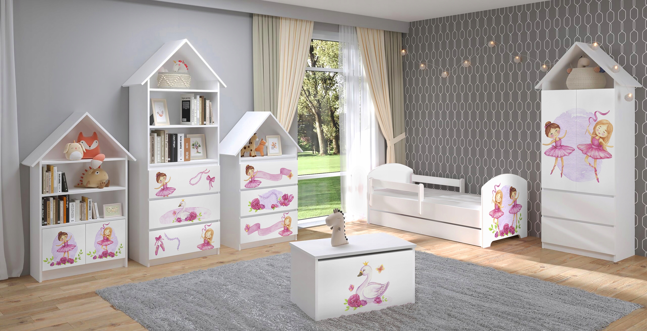 Контейнер ідеально поєднується з іншими меблями з наших колекцій, що дозволяє вільно компонувати набір відповідно до розміру кімнати та потреб і віку маленького мешканця. У колекції також є різні предмети, серед яких: ліжко, ліжечко, шафа, комод, полиця, письмовий стіл і тумбочка.