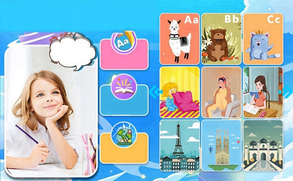 Нова дитяча карусель включає 26 уроків абетки, 24 національні пам’ятки та 12 щоденних завдань. Також на телефоні доступні 8 розвиваючих ігор, завдяки яким діти можуть весело провести час, удосконалюючи свою логіку, мислення та реакцію. Цей дитячий телефон було вдосконалено. Підтримує режим селфі!