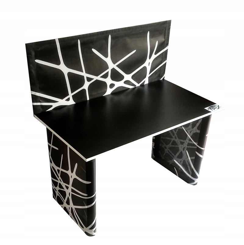 Малюнок TEX, розроблений для геймерів, надає столу унікальний характер, контрастні кольори та лінії зливаються з краями стільниці та полиці, роблячи все виглядає чудово.