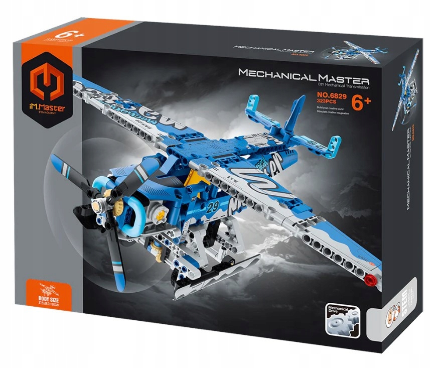 На блоках зображено блакитний гідролітак із обертовим гвинтом.