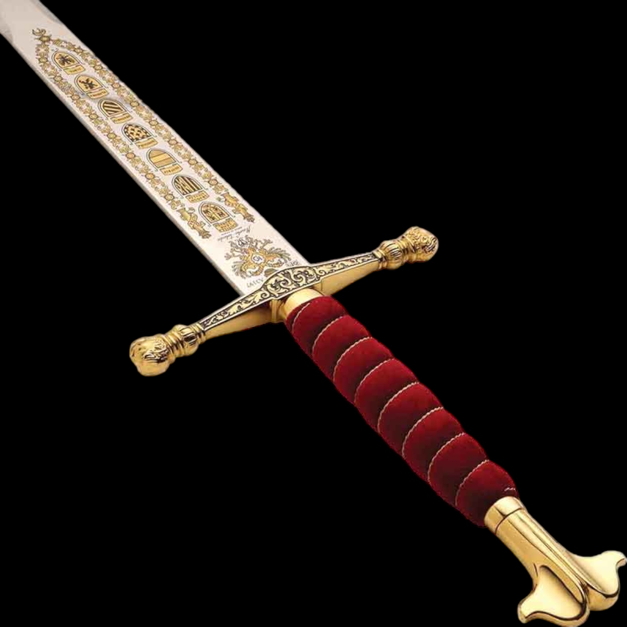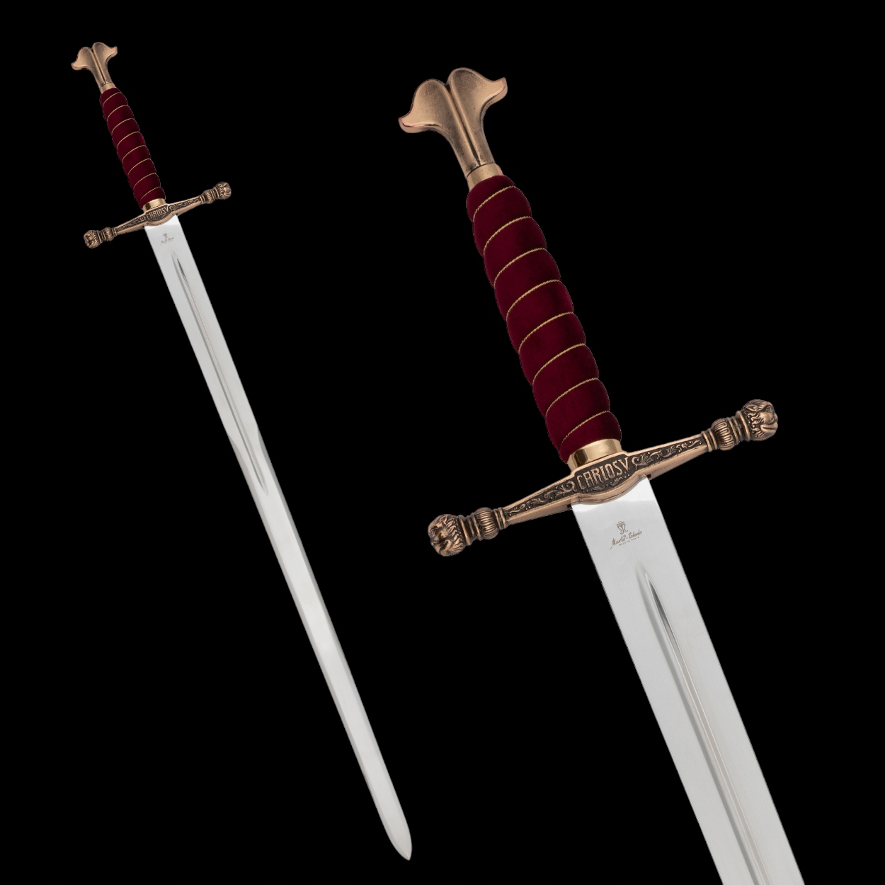 Приголомшлива копія меча Карла V Габсбурга. Він жив у 16 столітті як король Іспанії, привів до об’єднання цієї країни, а також проводив активну зовнішню політику з іншими європейськими країнами.