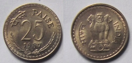 Індія 25 пайс 1987