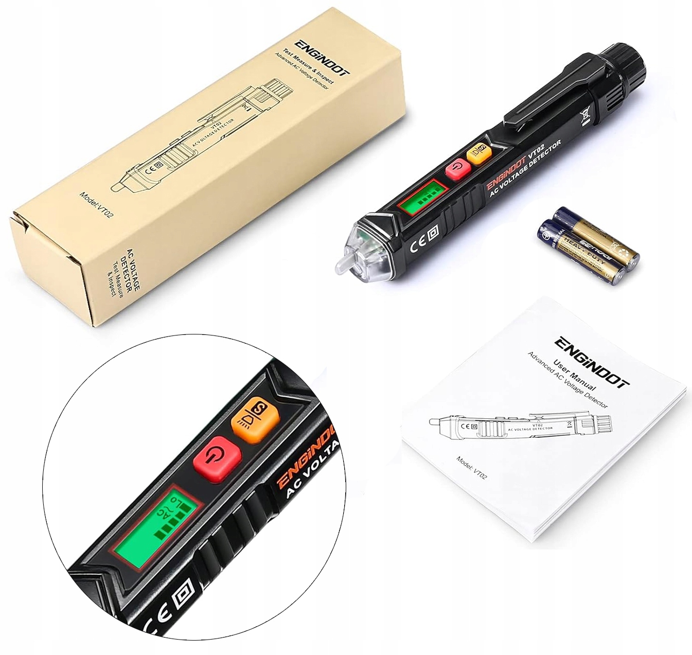 Регульована чутливість робить вимірювання більш чутливим і гнучким. Датчик напруги ENGINDOT VT02 має подвійний діапазон тестування. Ви можете налаштувати чутливість відповідно до ваших потреб (12-1000 В змінного струму або 48-1000 В змінного струму); Автоматичне визначення напруги; Під час використання датчик NVC зонда може автоматично визначати напругу та відображати його на РК-екрані.