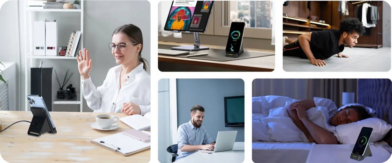 Індуктивний зарядний пристрій на столі в офісі, столі у вітальні чи спальні дає змогу заряджати пристрій і мати легкий доступ до це одночасно. Не кажучи вже про те, що у вас вільні обидві руки!
