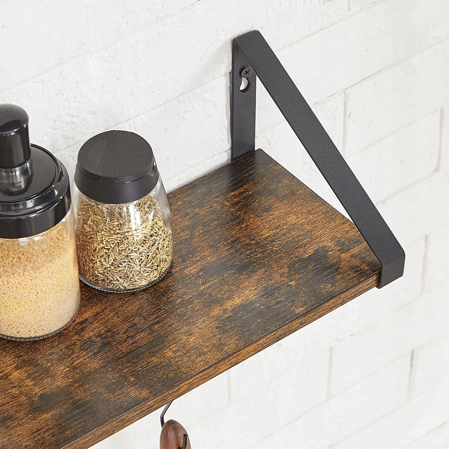 ✅ На кухні настінна полиця з вішалкою для одягу також буде дуже практичною. На ньому можна зберігати спеції, тарілки чи чашки, а додатково, завдяки п’яти гачкам, можна повісити на нього кухонне начиння, ключі чи ганчірки.