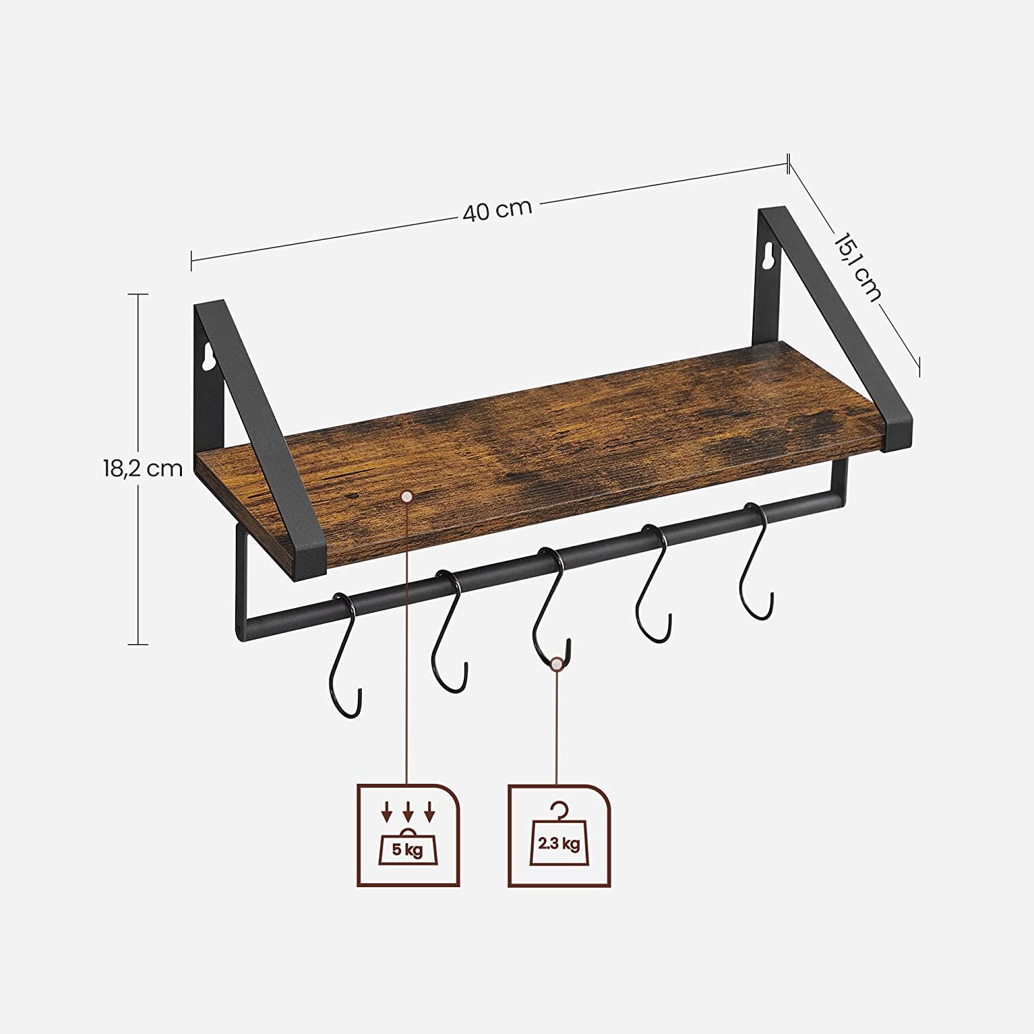⏩ Наша полиця не тільки надає вам простір для зберігання ваших улюблених прикрас, рослин, книг та інших предметів, а також пропонує 5 міцних гачків, на які ви можете повісити ключі в передпокої або кухонне начиння .