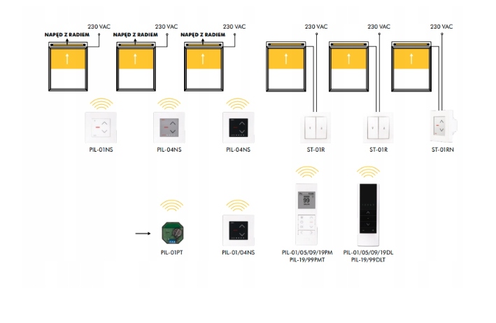 Привід керується бездротовим способом через передавачі INEL. Стандартна довжина кабелю живлення у всіх трубчастих двигунах INEL становить 2 м.