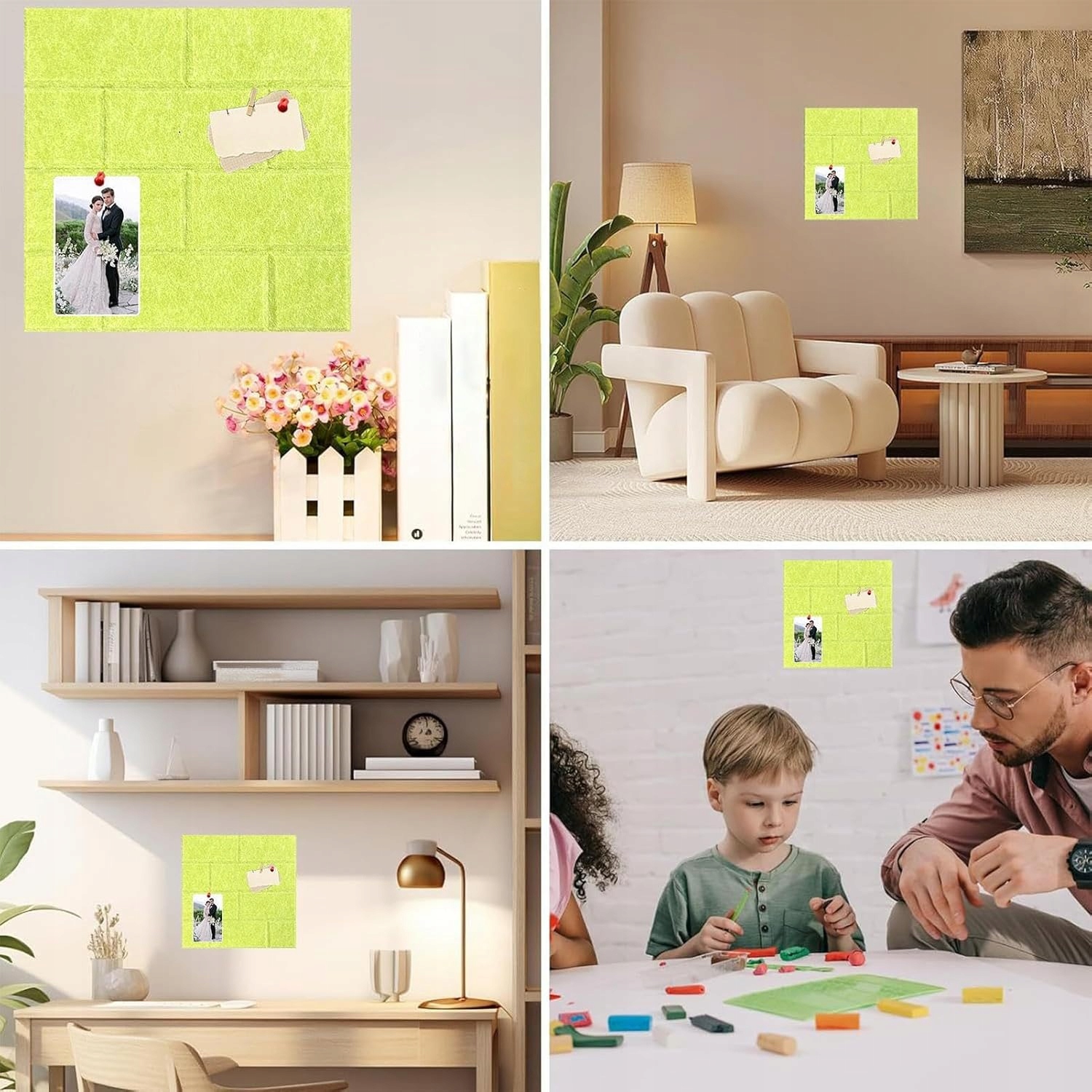 Дошки оголошень, які самоклеяться та легко знімаються, пропонують безпечний спосіб упорядкування нагадувань, пошти, календарів тощо. Їх багатофункціональний дизайн покращує оздоблення будинку, а також забезпечує звукопоглинальні властивості. Ідеально підходить для демонстрації фотографій або планування подорожі, природним чином поєднує функціональність з естетикою.