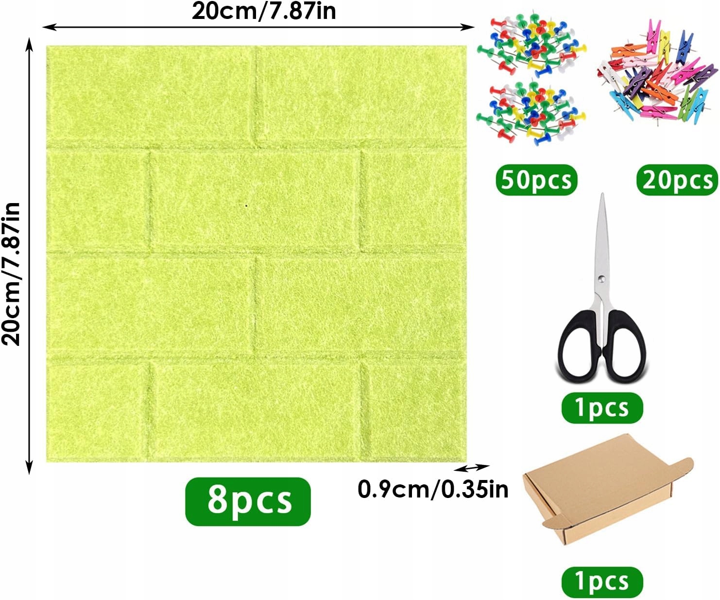 Набір містить штифти пробка, ножиці, дерев’яні кліпси та самоклеючі дошки з фетру, що дозволяє легко створювати різноманітні декоративні стилі з мінімальними зусиллями