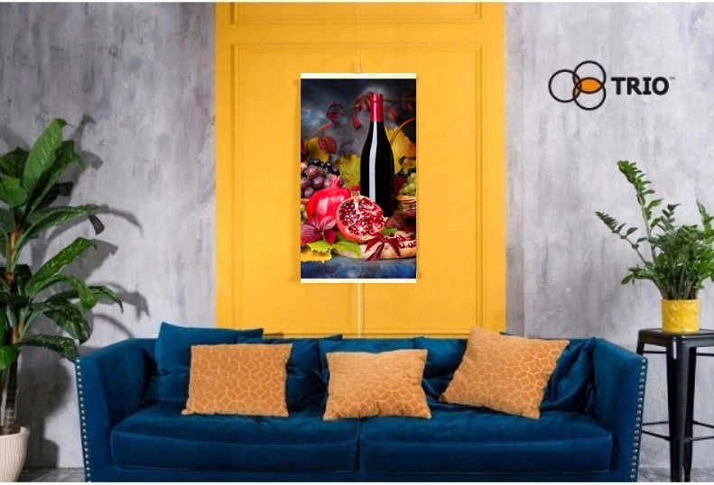 Основна частина радіатора виконана зі стійкої до згинання та розриву полімерної нагрівальної плівки, на яку нанесено малюнок з малюнком. Все кріпиться дерев’яними планками.