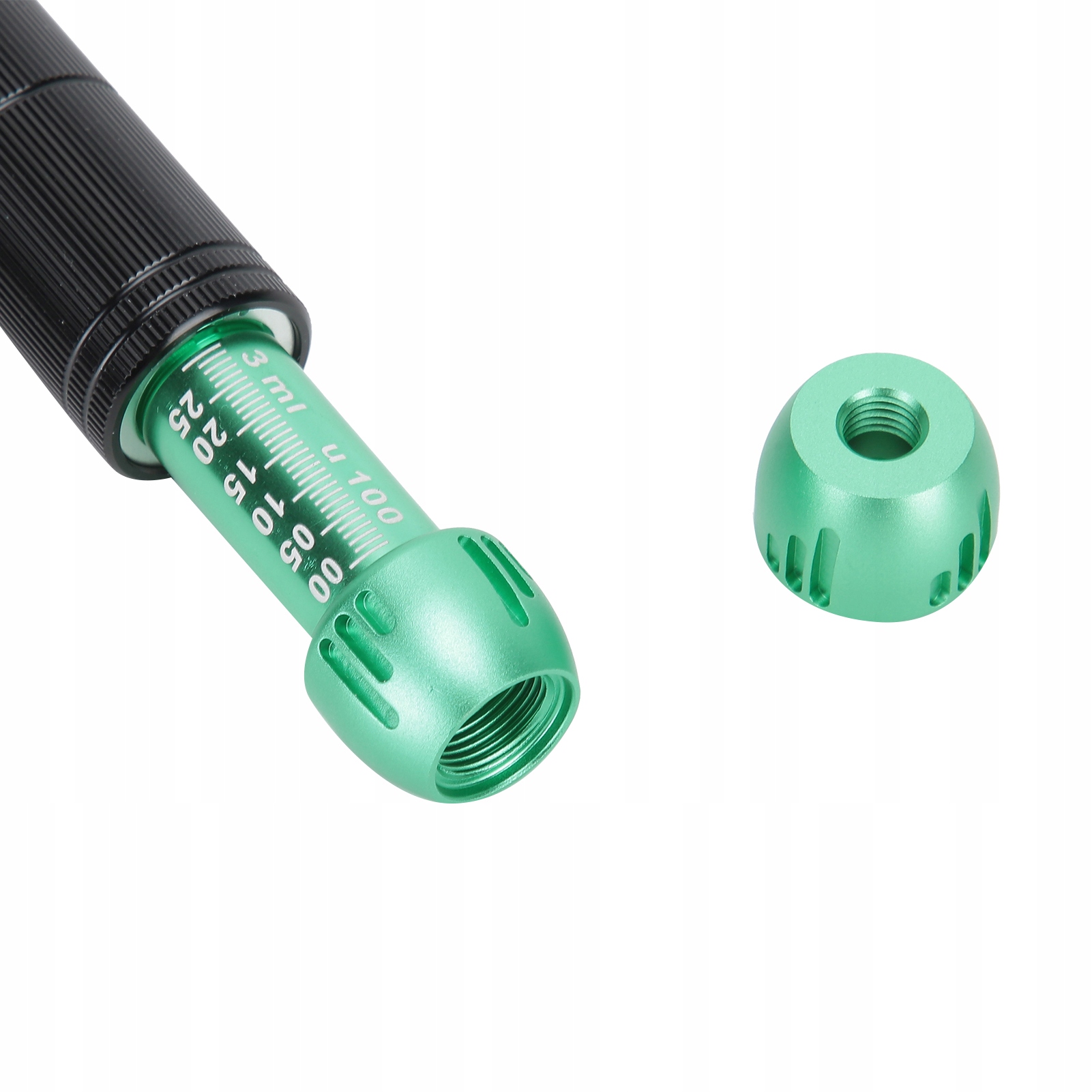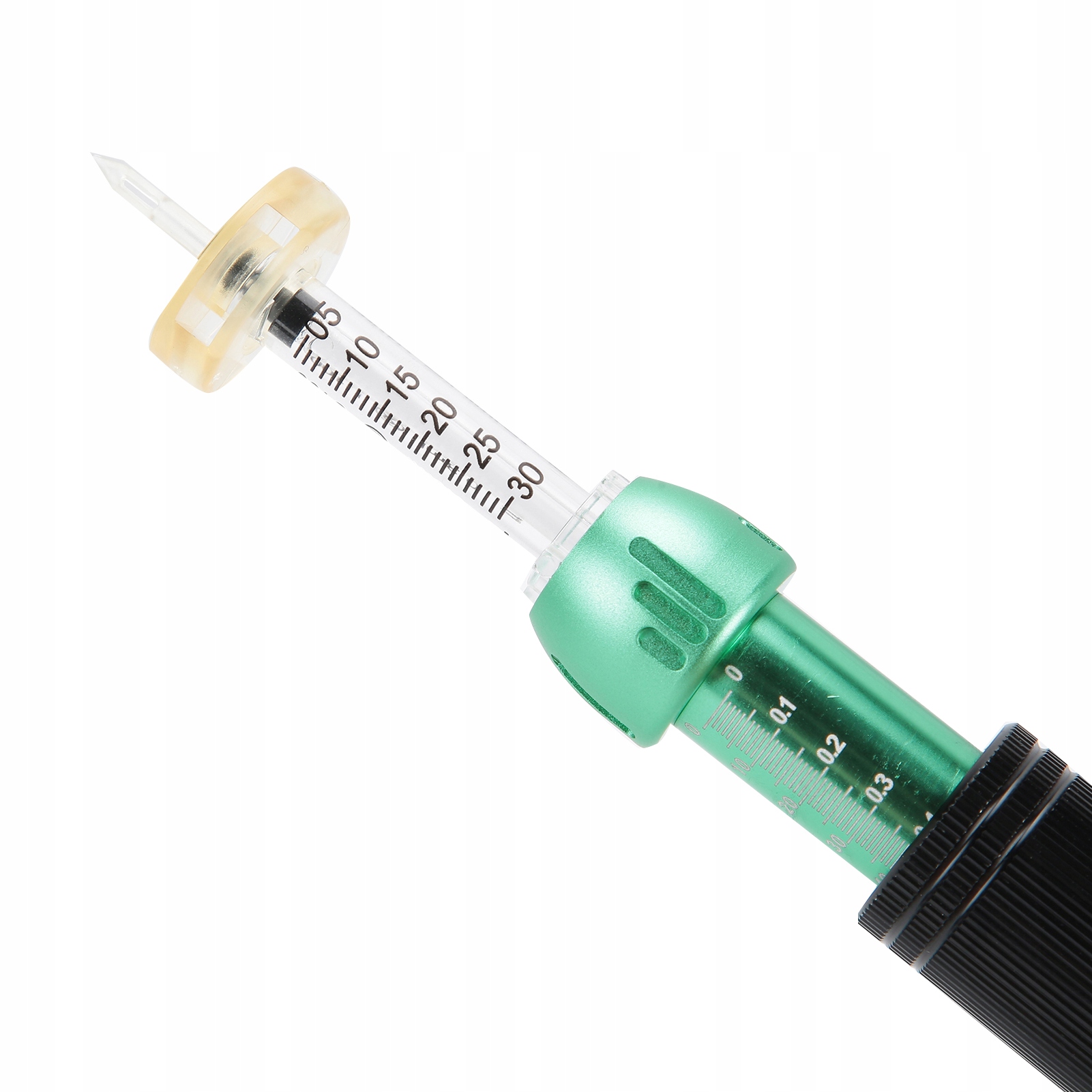 1. Пружина і поршень, які обертаються під тиском, швидко і рівномірно вводять препарат під шкіру через отвір діаметром 0,17 мм. Можна змінити 3 рівні потужності.