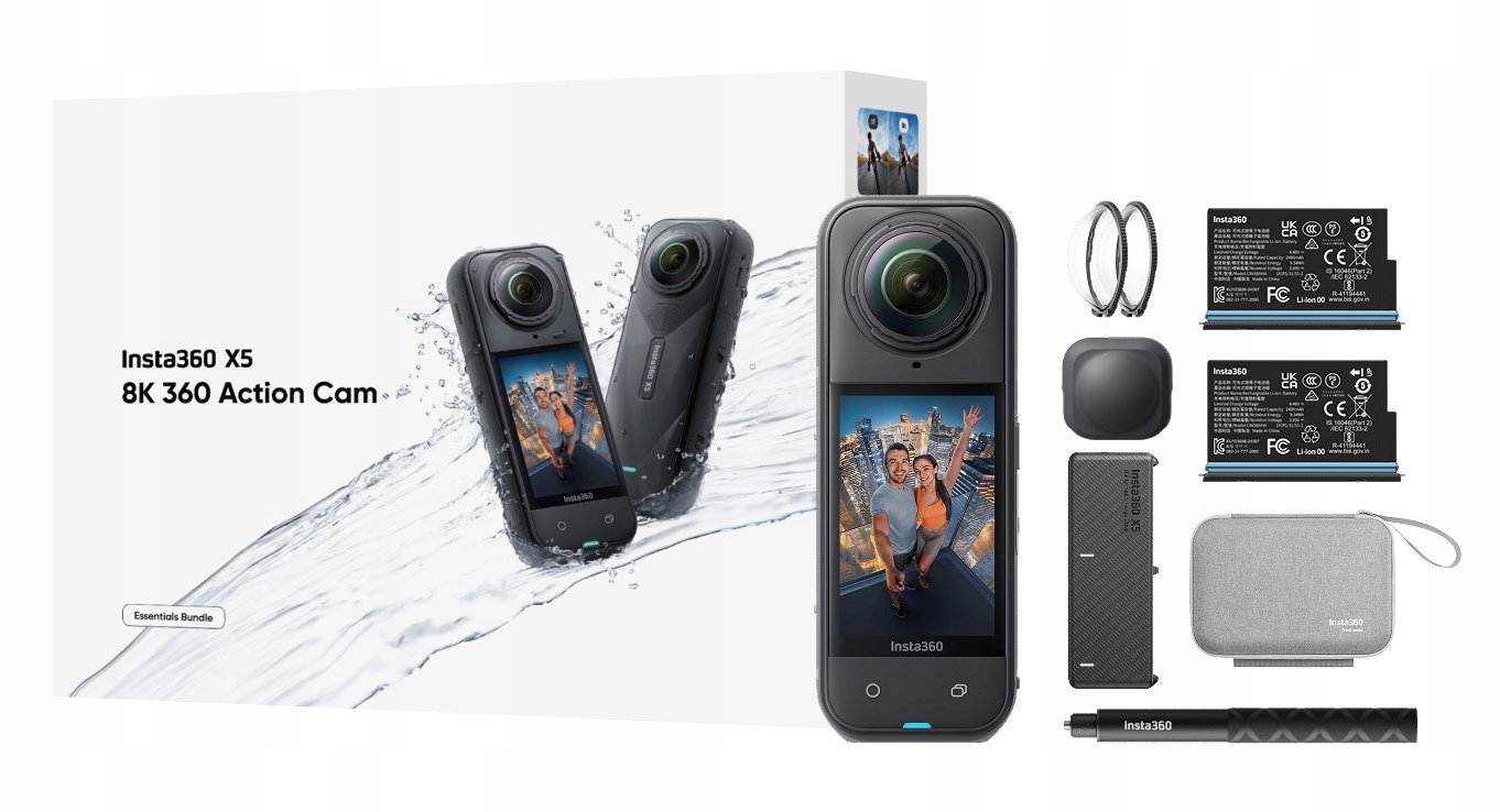 Insta360 X5 Essentials Bundle | Камера 360° 8K HDR | 72 МП | FlowState Stabilization | Набір із палкою, футляром і кришкою