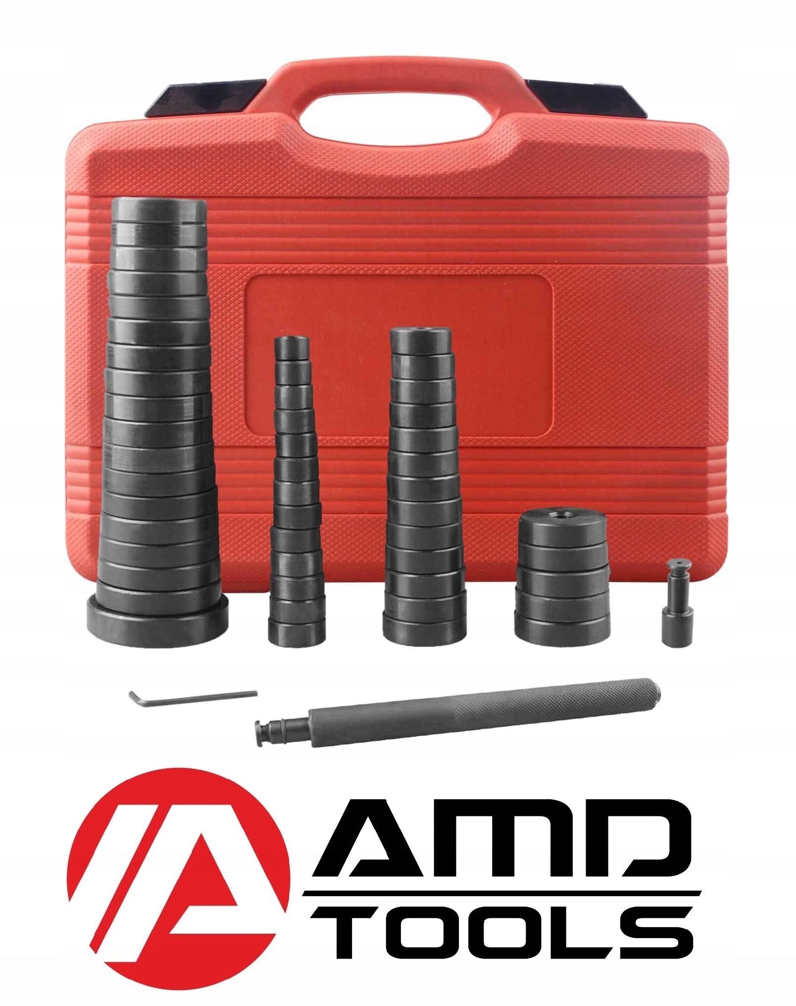 Набір інструментів AMD TOOLS призначений для монтажу та демонтажу підшипників, металево-гумових втулок і штифтів.