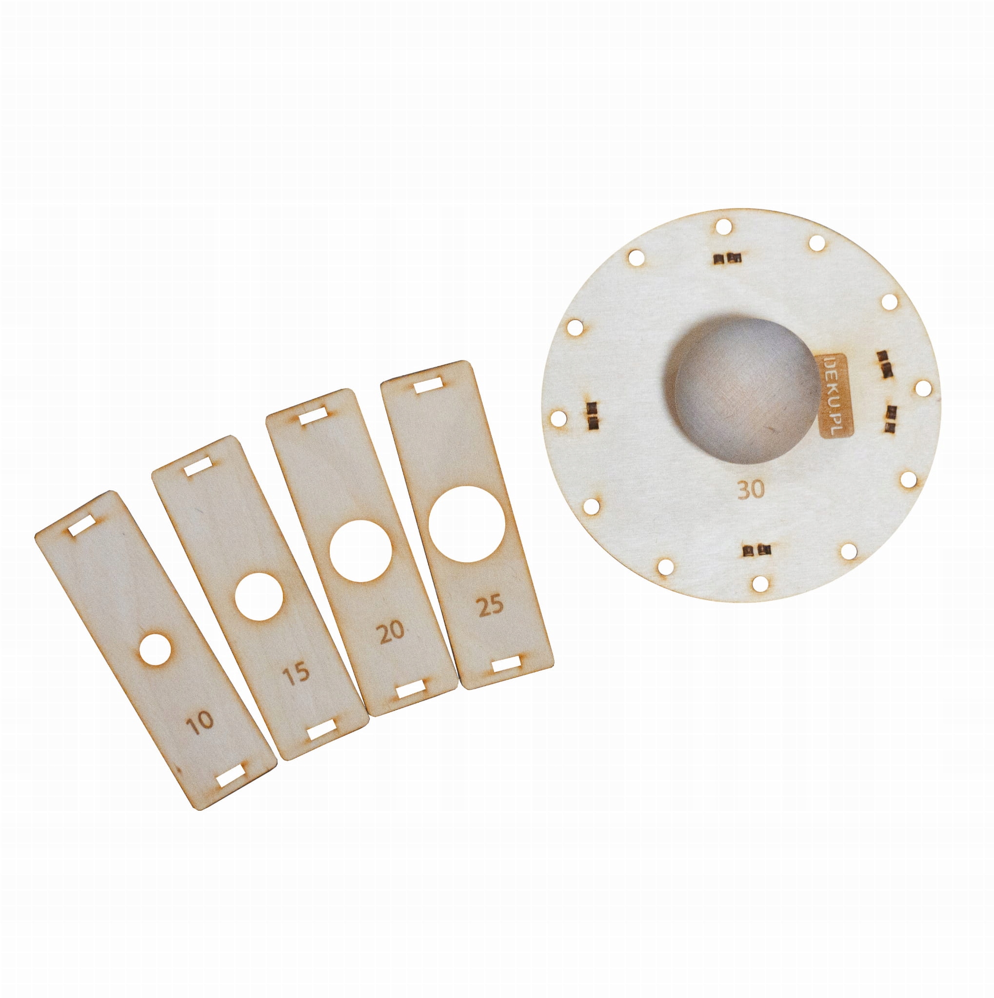 Ми кладемо доріжку з двох мотузок, посередині яких ми потягнемо платформу з м'ячем. Для початку це може бути не складно практикувати. Ми починаємо з одного кінця лабіринту. Ми кладемо платформу з м'ячем на початку і хапаємо посилання, прикріплені до деревини. Ми намагаємося перемістити ціле, щоб не торкнутися краю доріжки чи мотузки, щоб м'яч не падав зсередини і не котиться з доріжки - тому ми не можемо підняти руки занадто високо за допомогою ланок, або нахилу вбік.