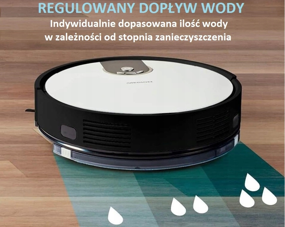 Робот-пилосос Medion MD 2011 також оснащений функцією миття. Приєднайте швабру та резервуар для води та увімкніть режим миття. Таким чином ви можете мати функцію прання після пилососіння. З відповідним дозуванням ви можете забезпечити свіжість без плям у вашому домі.
