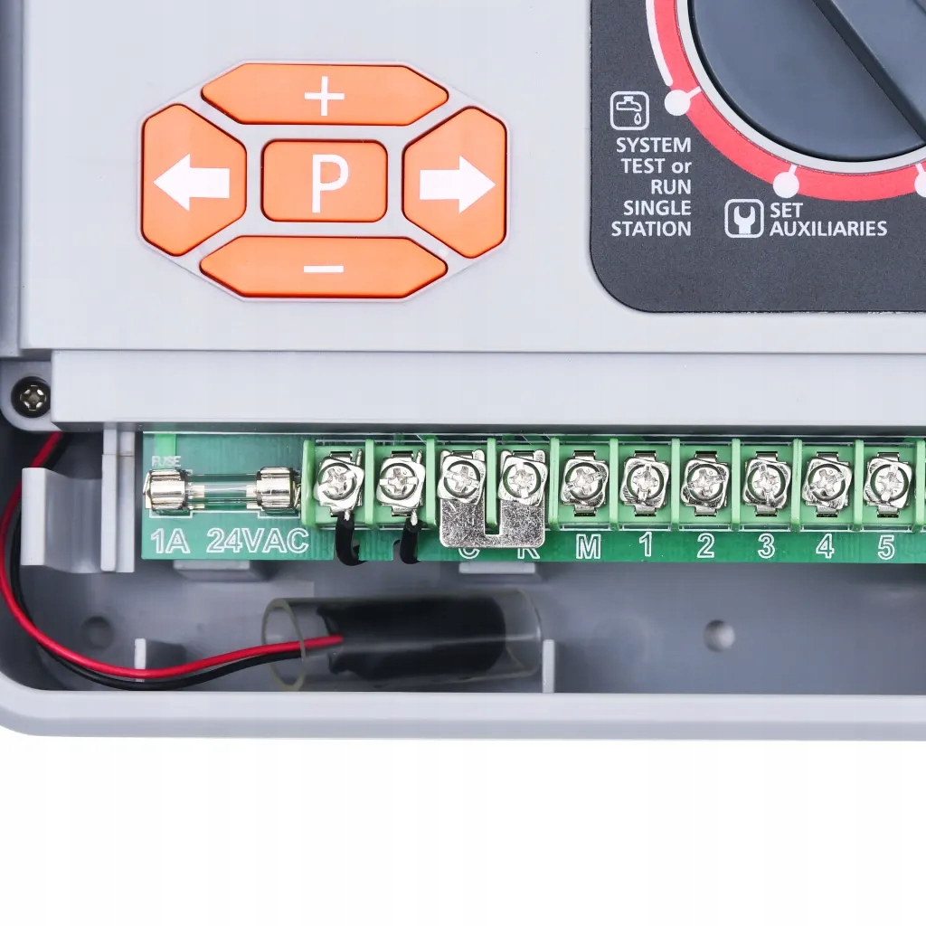 Цей контролер оснащений 4, 6, 9 або 11 клапанами, а також має 6 програм зрошення з можливістю налаштування час початку, закінчення та дії для кожного з них. Графік поливу можна настроїти на будь-який день тижня з визначеним часом початку та закінчення. Час поливу може коливатися від 1 хвилини до 12 годин 59 хвилин, залежно від ваших налаштувань.