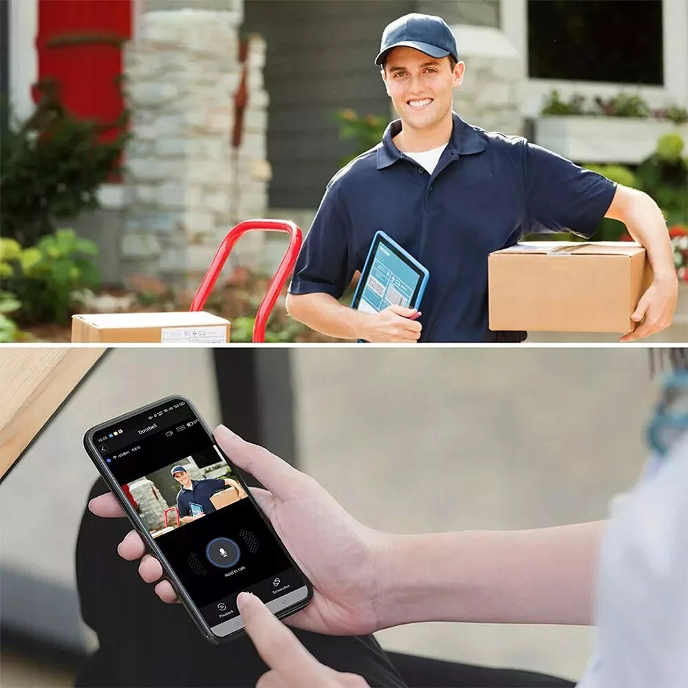 Звук і відео бездротового дверного дзвінка Wi-Fi ідеально синхронізовані. Завдяки інтелектуальному шумопоглинанню та технології адаптивної швидкості передачі даних він забезпечує двосторонню розмову та живе відео.