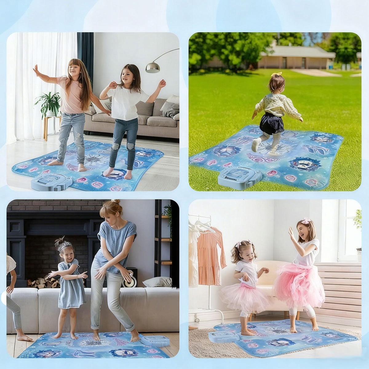 ❄️Протиковзкі, водонепроникні та високоякісні матеріали - Забезпечує легке чищення та зручне складання для транспортування. Дитячий танцювальний килимок має м'яку м'яку поверхню з нековзкими силіконовими частинками знизу, що забезпечує безпечну платформу для танців і стрибків. Він виготовлений з високоякісного нетоксичного матеріалу PEVA, пройшов випробування відповідно до стандартів EN71, CPSIA та ASTM, а його очищення обмежується простим протиранням. Складна конструкція робить його портативним і простим у зберіганні — ідеально підходить для сумки для подорожей. Оцініть танцювальну гру як у приміщенні, так і на вулиці!