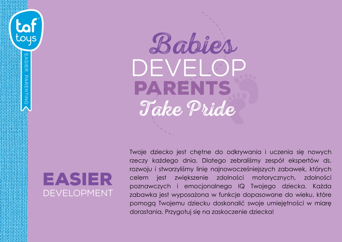 Тому в Taf Toys ми підтримуємо вас, пропонуючи широкий асортимент продуктів, розроблених, щоб допомогти вам задовольнити потреби немовлят та їхніх батьків, допомагаючи обом у повсякденній діяльності з веселощами, любов’ю та турботою, які є основою нашої стратегії легшого батьківства. Як наслідок, ми запускаємо шість категорій «Making It Easy», де кожен батько може знайти продукти, які зроблять їх щоденне батьківство ще приємнішим.