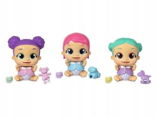 Асортимент включає трьох немовлят, кожен з різною іграшкою та соскою.