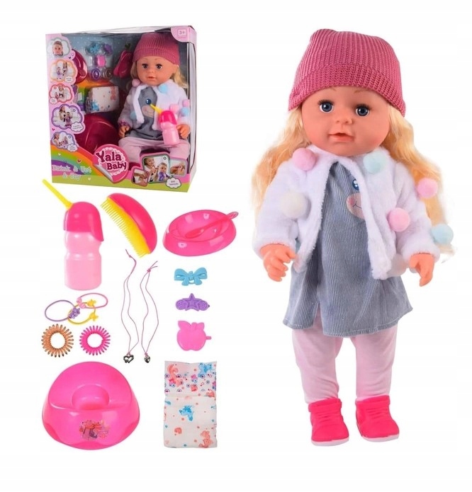 В набір входить миска з якої можна годувати малюка і підгузник для сповивання (лялька також має функцію сечовипускання, але для цього треба спочатку випити пляшку води). Руки і ноги повністю рухливі, тому лялька може стояти і сидіти.