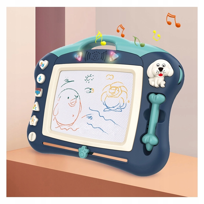 Магнітна дошка дає можливість довго творчо розважатися! Дошка спонукає писати та малювати b>. Малювання допоможе зосередитися, заспокоїти і заспокоїти дитину. Альбом дозволяє створювати нескінченну кількість картинок - просто пересуньте спеціальний повзунок, і малюнок зникне, і ви зможете малювати знову! У комплект також входить зручна чарівна ручка. Крім того, 5 багатофункціональних кнопок: пісня, мелодія, тварина, літера та кнопка перетворення. Під час звуку дошка світиться, привертаючи увагу дитини. Дошка має зручну ручку, тому дитина може брати її куди завгодно, а також має можливість подовжити ніжки, що полегшує дитині писати на стіл. Опис розвиватиме у дитини ручні здібності, уяву, креативність та допоможе розвивати її художні здібності Baby's бік!