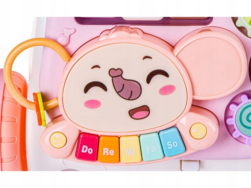 Наш інтерактивний продукт поєднує в собі багато функцій, таких як: штовхач, навчальний стіл, знімна панель основний (наприклад, для підвішування біля ліжка або для окремої гри), знімний ігровий слон та багато інших. Продукт призначений для малюків від 12 місяців. Штовхач дуже допомагає навчитися ходити самостійно.