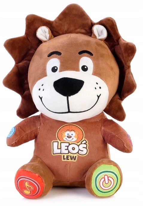 Інтерактивний Лев Лео — великий і м’який плюшевий талісман. Після натискання відповідної кнопки Лео буде співати, розповідати вірші або імітувати звуки тварин. Плюшевий ведмедик поєднує в собі функції обіймів і оповідача. Великий і м'який на дотик талісман, виготовлений з матеріалів найвищої якості, безпечний для дітей. Вашій дитині вона сподобається, і вона не уявляє собі гру без неї. До нього так приємно притискатися!