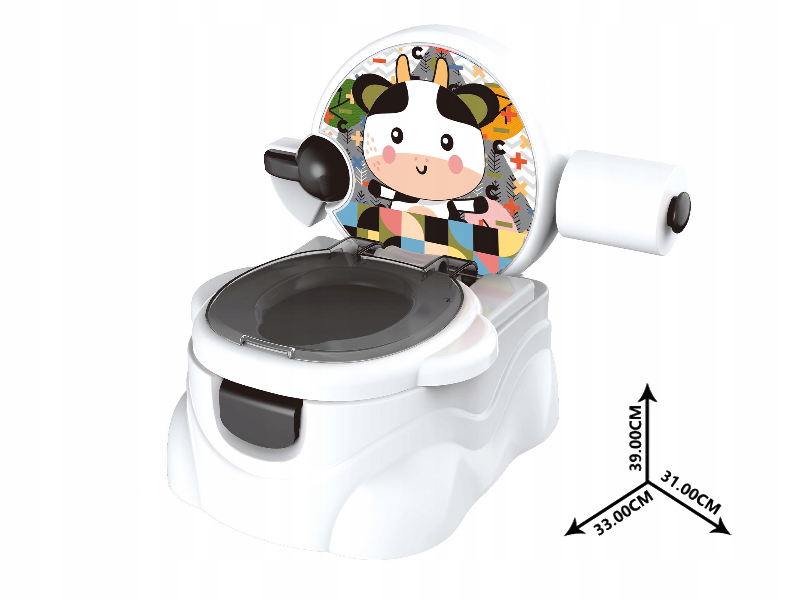 Білий і чорний колір / модель Krówka / набір 7 в 1 / горщик / змив / накладка / тримач паперу / сидіння / табурет (підніжка) / музика