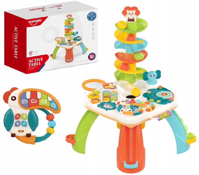 Гірка-кулька, елементи, що обертаються, і музичний тукан додатково зацікавлять і заохочуйте дитину до довгих годин веселощів під ритм мелодії. Стіл стійкий. Ми можемо використовувати його як стійкий столик або просто ігрову панель, просто швидко від'єднайте ніжки.