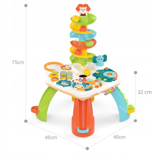 Стіл допоможе натренувати м'язи ніжок і рук малюка, а також допоможе при навчанні стояти і ходити самостійно. Функціональний дизайн іграшки допоможе дитині зрозуміти принцип причини і наслідку, що дуже важливо в житті. Інтерактивний столик із безліччю завдань — це не лише ідея для дуже цікавої розваги, а й оригінальний спосіб покращити правильний розвиток малюка.