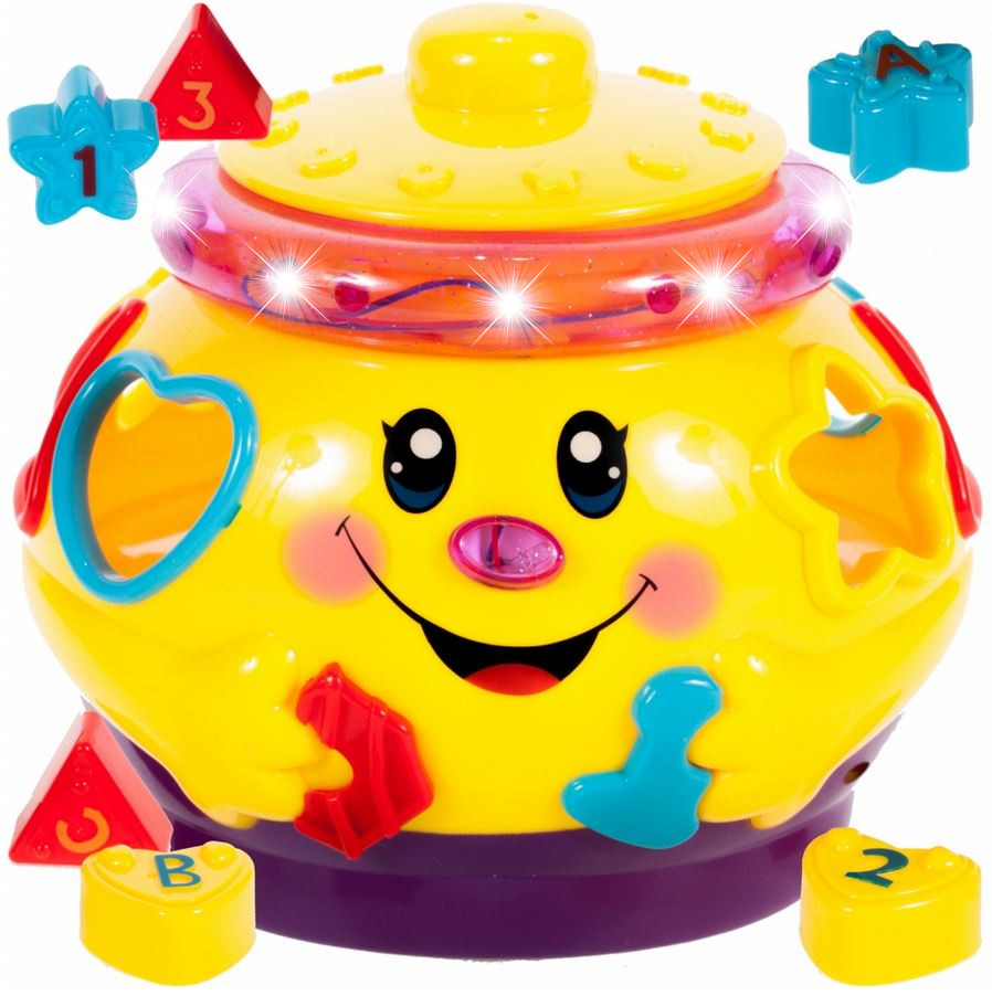 Коли ви його вмикаєте, горщик грає мелодії та рухається по кімнаті, а коли зустрічає на своєму шляху перешкоду, відскакує від неї та йде далі! Іграшка позитивно впливає на розвиток когнітивних функцій дитини. Ваша дитина навчиться розрізняти форми та кольори, а горщик також має світлові ефекти, які зацікавлять вашу дитину.