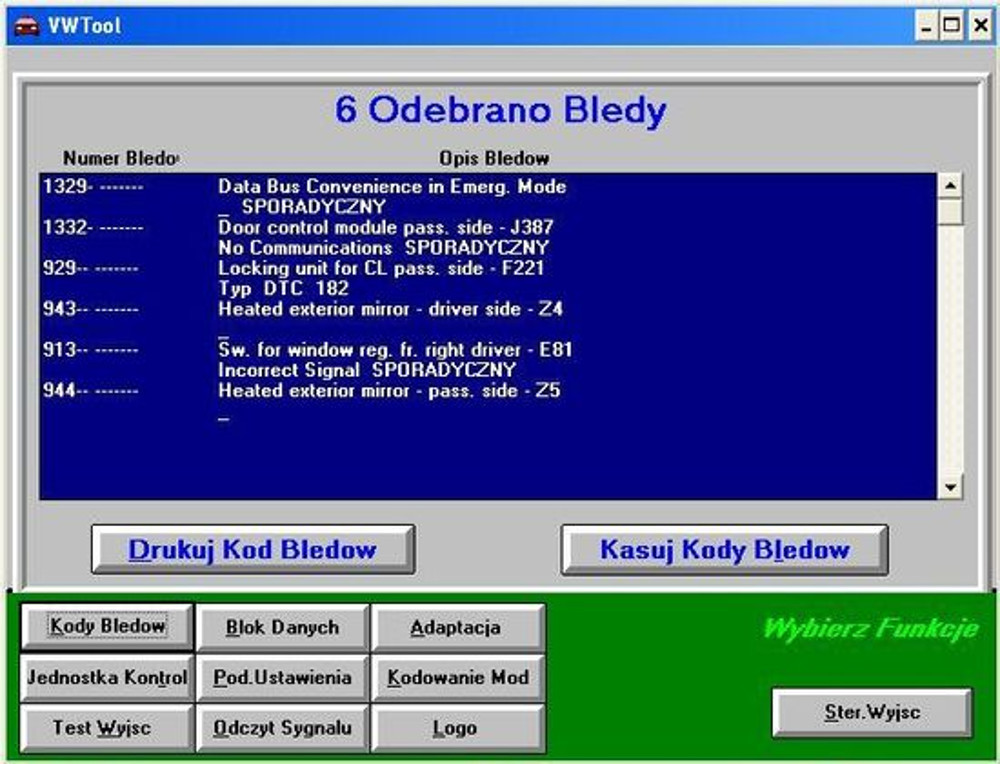 Інтерфейс дозволяє повну діагностику всіх модулів. Коди помилок відображаються з описом, наприклад, "0306 Циліндр 6 запалювання - пропуск запалювання"