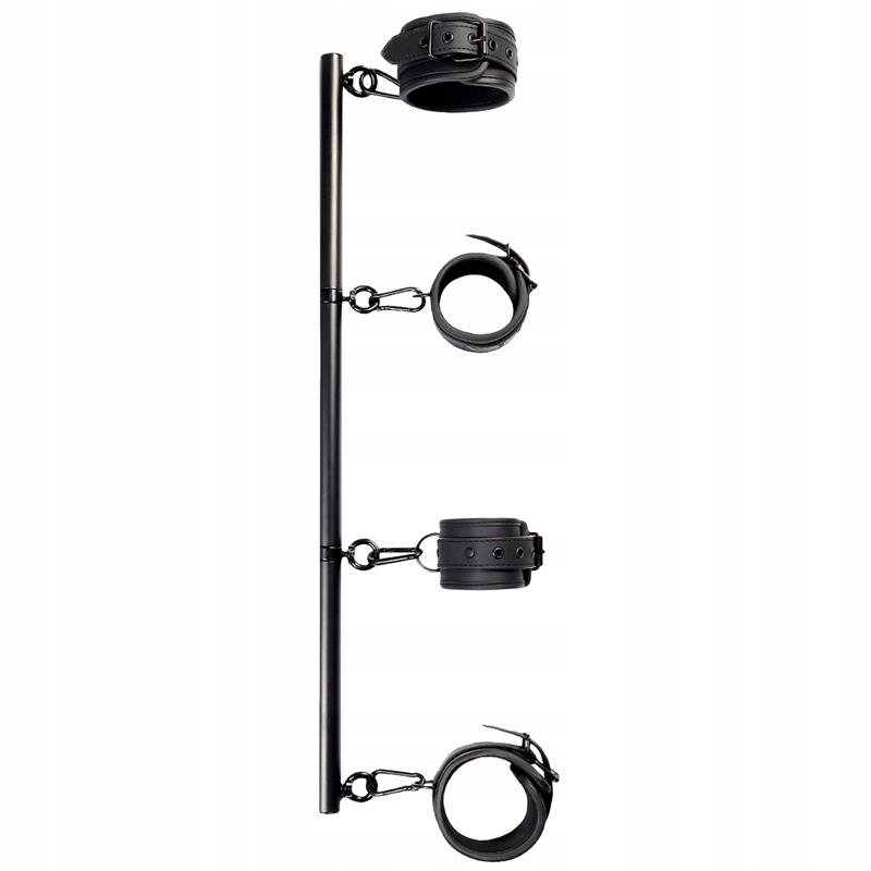 любителі BDSM завжди цінують хорошу іммобілізацію, а в чорній тіні фетишу ви знайдете все необхідне. Він має внутрішній жорсткий промінь (який можна зняти і розділити на три частини) та дві пари наручників - на зап’ястях і кубиках.