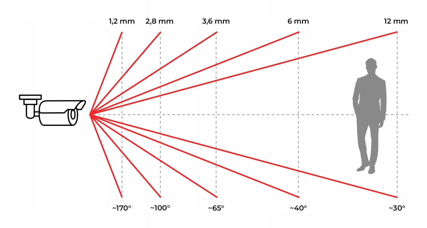 Об’єктив із фокусною відстанню 2,8 мм забезпечує кут огляду прибл. 98º, завдяки чому камери можна монтувати над дверима або у вузьких проходах, отримуючи широке поле огляду. На фото нижче ми бачимо, яку велику площу може захопити наша камера. Це ідеальне рішення для моніторингу зони, де потрібна найвища якість зображення на великих зовнішніх поверхнях.