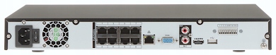 Керування мишкою: ІЧ-пульт дистанційного керування в комплекті: Перемикач PoE: Вбудований 8-портовий перемикач PoE, 25,5 Вт / канал - PoE (802.3af/at) Максимальне загальне навантаження комутатора: 130 Вт Джерело живлення: 100 ... 240 В змінного струму, 50 / 60 Гц Споживана потужність: макс. 10 Вт (без жорсткого диска) Робоча температура: -10 °C ... 55 °C Вага: 2,51 кг Розміри: 375 x 328 x 53 мм Підтримувані мови: польська, англійська Виробник/бренд: DAHUA Гарантія: 3 роки