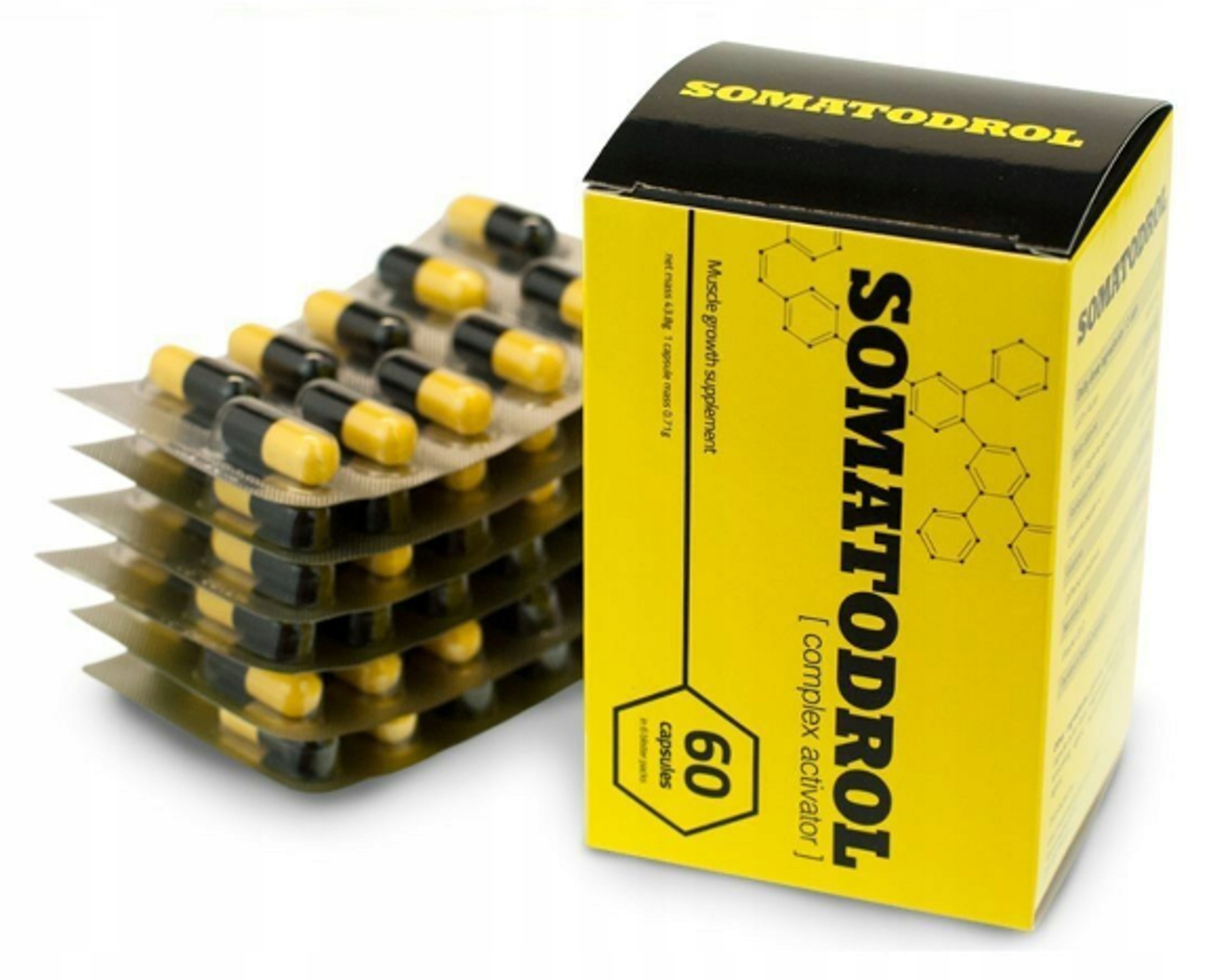 SOMATODROL - це дієтична добавка, яка сприяє збільшенню м'язової маси, основним інгредієнтом якої є спеціальна формула GRTH Factor. Його рецептом є бета-аланін і аргінін, поєднані в унікальних пропорціях, щоб гарантувати найкращі результати. Ця формула відповідає за збільшення вироблення тестостерону і гормону росту, прискорює ріст м'язів, регенерацію організму після фізичних навантажень і забезпечує енергією, необхідною для наступної серії вправ. Інші інгредієнти добавки включають: Кайенський перець, гуарана та вітамін В12.