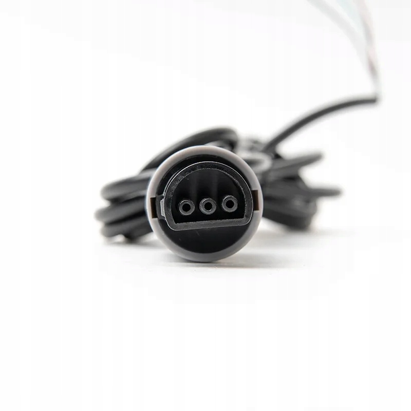 Довжина кабелю приблизно 180 см, з одного боку закінчується вилка, яка підходить до розетки, вона знаходиться в консолі, з іншого боку є 3 дроти, підготовлені для пайки в колодці.