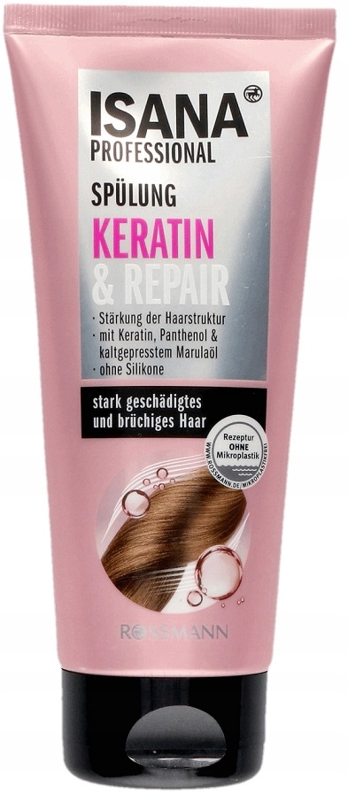 Кондиціонер для волосся Keratin & Repair із серії Isana Professional був розроблений спеціально для потреб дуже пошкодженого та ламкого волосся. Його формула, що містить кератин, регенерує та зміцнює чутливі кінчики волосся, надаючи волоссю більше життєвої сили. В результаті волосся стає більш стійким і має природний блиск.