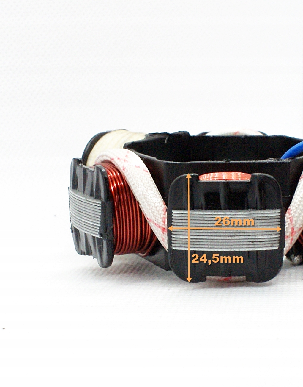 Статор має сталеву основу. Має 6 котушок, 1 з яких розмотується.