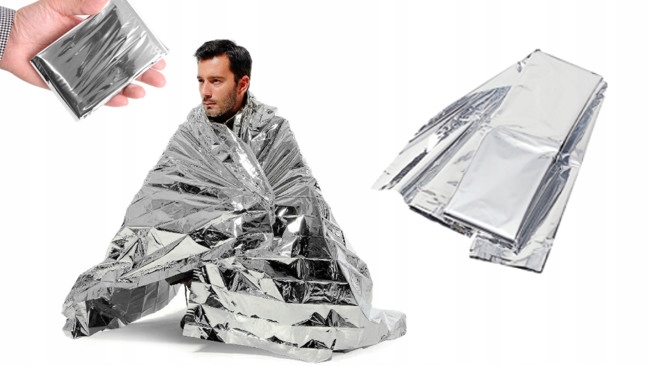 Аварійна термоковдра з високоякісної срібної фольги, яка використовується в порятунку, туризмі, альпінізмі, надзвичайних ситуаціях або екстремальних умовах.